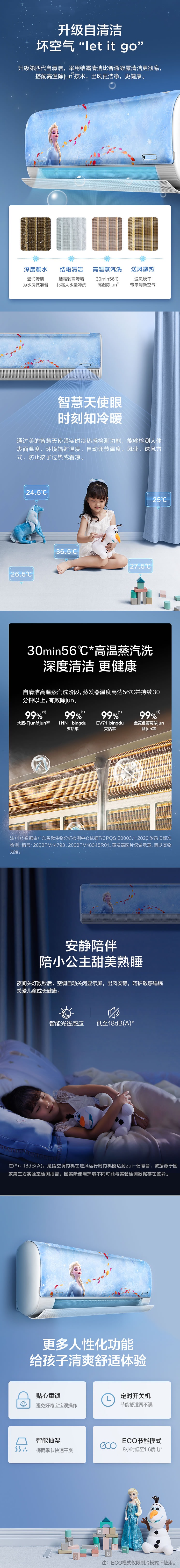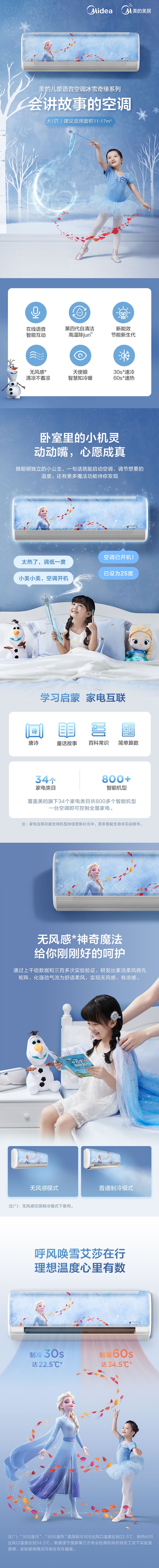 推薦理由:沒有哪個小朋友可以躲得過 LET IT GO 的魔力,孩子們喜愛的冰雪奇緣攜手美的推出了第三代兒童無風感空調。與呼風喚雪的愛莎同行,不僅好看且更加智能。